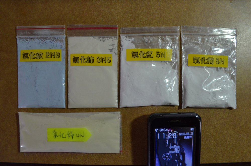 釤銪釓富集物、金屬鋱、氧化鋱、金屬釔、氧化釔、氧化鐿、氧化釔銪、